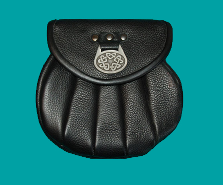 Ladies Hybrid Kilt Black with Green in Pleats 4 leather Straps 2 Pockets