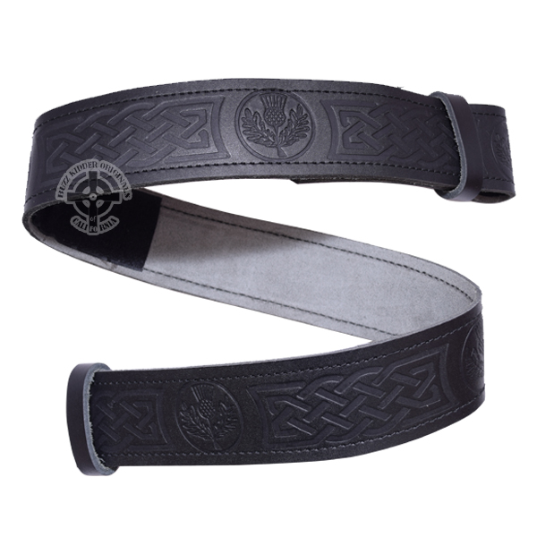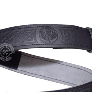 Scottish Flower Embossed Black Real Leather Belt for kilts