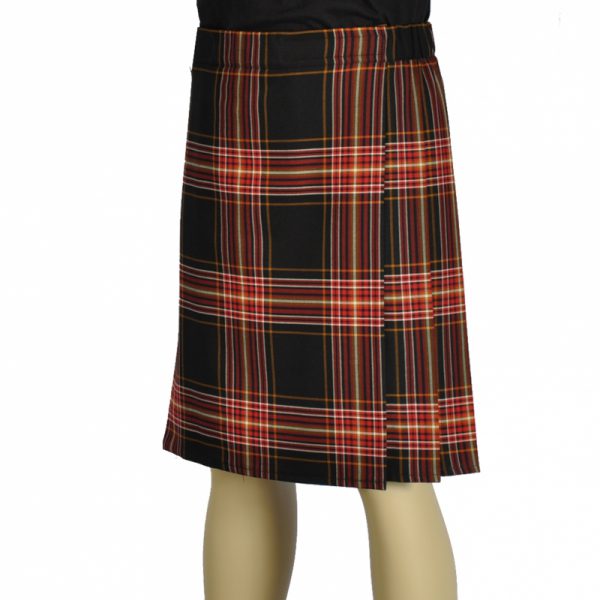 Ladies Hybrid Kilt Black with Green in Pleats 4 leather Straps 2 Pockets