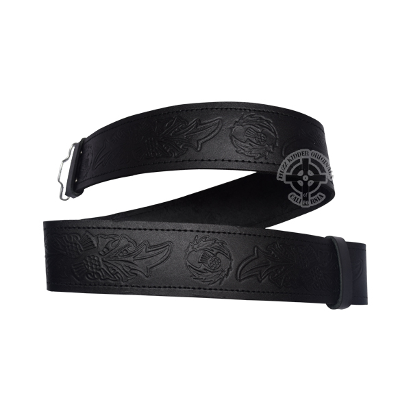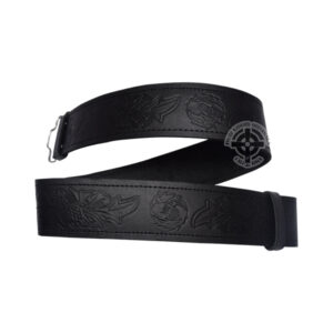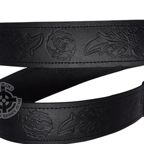 Thistle Leaf Embossed Black Real Leather Belt for kilts